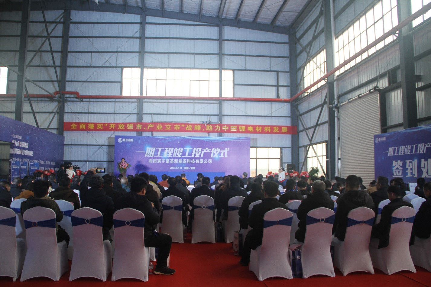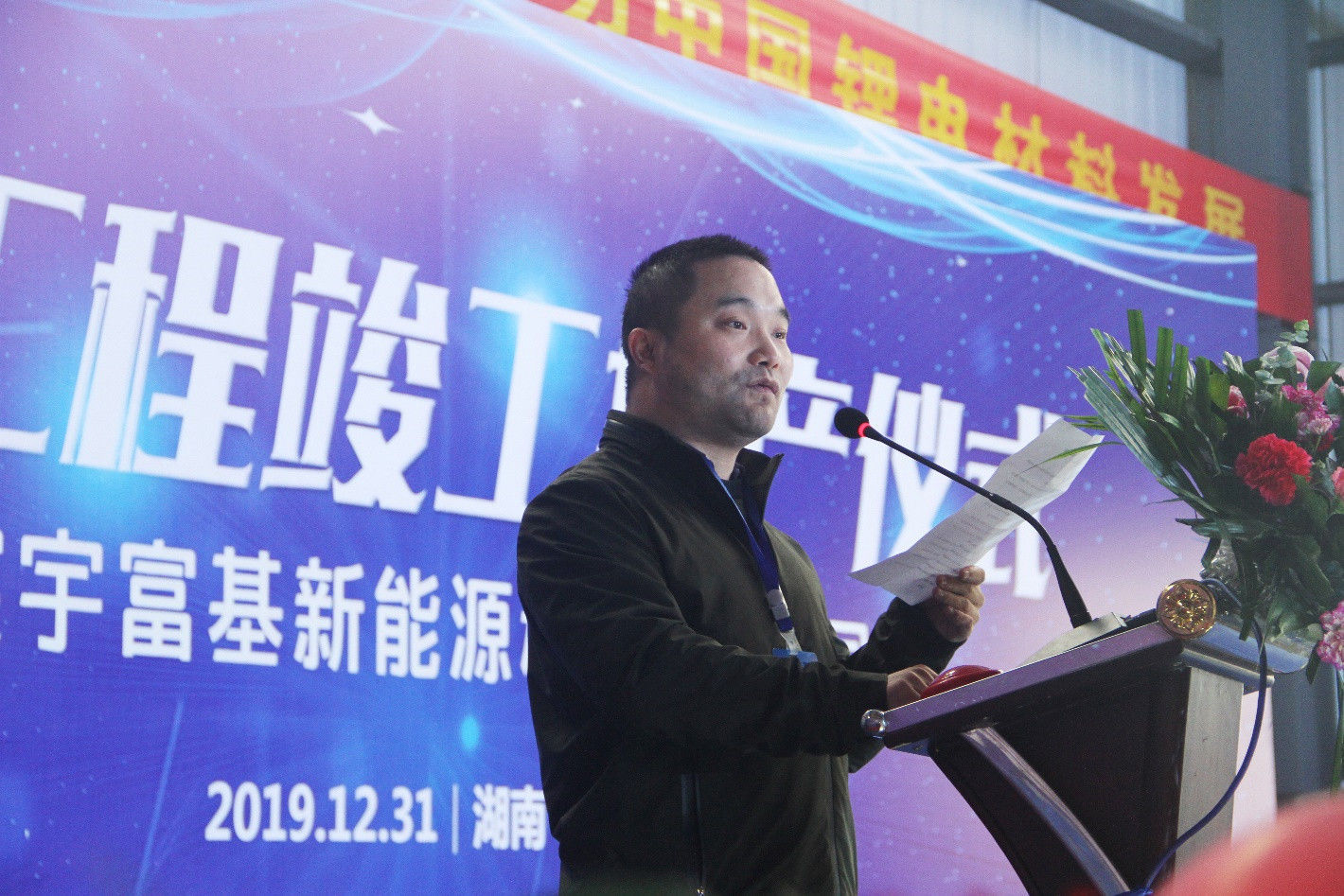 2019年12月31日上午10時許,湖南宸宇富基新能源科技有限公司年產2萬噸鋰離子電池負極材料項目1期工程竣工投產儀式在宸宇富基廠房內隆重舉行,我司董事長羅才華先生受邀列席并作了儀式發言。
